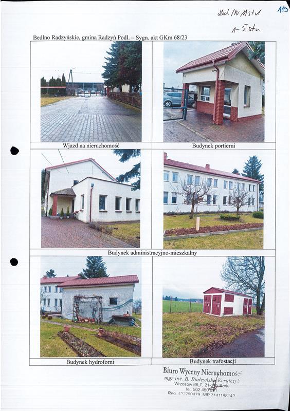 2. udziału 1/200 części należącego do GORTAN Sp. z o.o. w prawie wieczystego użytkowania nieruchomości w postaci działek gruntowych nr 75/2, 75/4, 75/5, 75/7, 75/8 o pow. 3,3069 ha częściowo zabudowanych budynkami niemieszkalnymi, biurowymi i innymi służącymi do produkcji pieczarek położonych w msc. Bedlno Radzyńskie gm. Radzyń Podlaski, dla której Sąd Rejonowy Wydział Ksiąg Wieczystych w Radzyniu Podl. prowadzi księgę wieczystą o numerze NKW LU1R/00027907/9. Suma oszacowania udziału 1/200 części wynosi 30.604,50 zł, zaś cena wywołania udziału jest równa 3/4 sumy oszacowania i wynosi 22.953,38 zł. Licytant przystępujący do przetargu powinien złożyć rękojmię w wysokości jednej dziesiątej sumy oszacowania udziału, najpóźniej w dniu poprzedzającym przetarg(za datę złożenia rękojmi przyjmuje sie dzień uznania rachunku bankowego komornika.) na konto komornika:BNP Paribas Bank Polska S.A. 16 2030 0045 1110 0000 0339 3750. Dla w/w nieruchomości Sąd Rejonowy Wydział Ksiąg Wieczystych w Radzyniu Podl. prowadzi księgę wieczystą o numerze NKW: LU1R/00027907/9.Rękojmia może być również złożona w formie książeczki oszczędnościowej zaopatrzonej w upoważnienie właściciela książeczki do wypłaty całego wkładu stosownie do prawomocnego orzeczenia sądu o utracie rękojmi. Zgodnie z przepisem art.976 §1 kpc w przetargu nie mogą uczestniczyć osoby, które mogą nabyć nieruchomość tylko za zezwoleniem organu państwowego, a zezwolenia tego nie przedstawiły oraz inne osoby wymienione w tym artykule.W ciągu dwóch ostatnich tygodni przed licytacją wolno oglądać nieruchomość w dni powszednie od godz. 12:00 do godz. 16:00 oraz przeglądać w Sądzie Rejonowym w Radzyniu Podlaskim przy ul. Wyszyńskiego 5 w pok. odpis protokołu oszacowania nieruchomości, operat szacunkowy biegłego sądowego, wypis z rejestru gruntów wraz z mapką z akt postępowania egzekucyjnego.Prawa osób trzecich nie będą przeszkodą do licytacji i przysądzenia własności na rzecz nabywcy bez zastrzeżeń, jeżeli osoby te przed rozpoczęciem przetargu nie złożą dowodu, że wniosły powództwo o zwolnienie nieruchomości lub przedmiotów razem z nią zajętych od egzekucji i uzyskały w tym zakresie orzeczenie wstrzymujące egzekucję.Użytkowanie, służebności i prawa dożywotnika, jeżeli nie są ujawnione w księdze wieczystej lub przez złożenie dokumentu do zbioru dokumentów i nie zostaną zgłoszone najpóźniej na trzy dni przed rozpoczęciem licytacji, nie będą uwzględnione w dalszym toku egzekucji i wygasną z chwilą uprawomocnienia się postanowienia o przysądzeniu własności.
