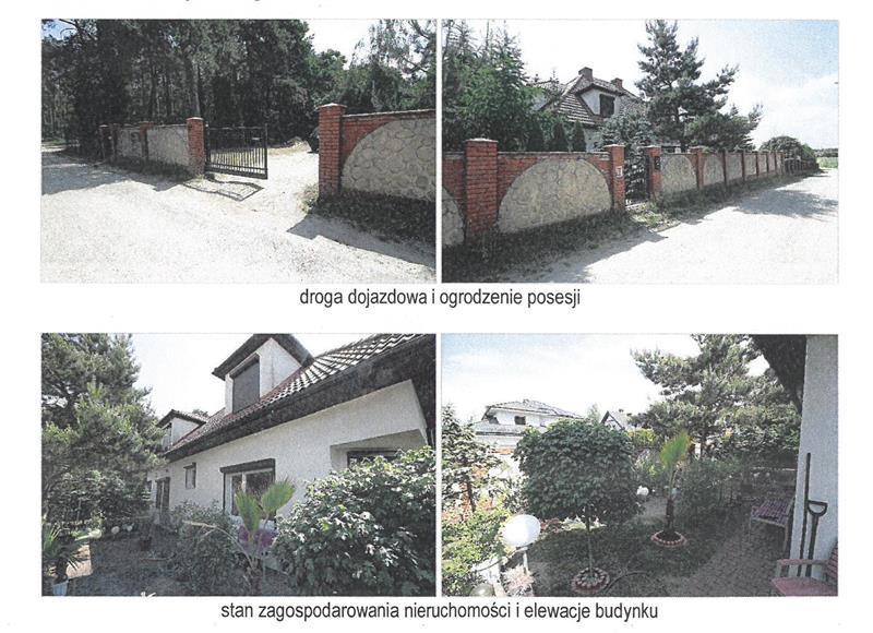 nieruchomość położona przy ul. Leśnej 5c na terenie miejscowości Skrzynki, w gm. Kórnik, stanowiąca działkę ewidencyjną nr 42/41 o powierzchni 689 m2, zabudowana budynkiem mieszkalnym jednorodzinnym o powierzchni użytkowej 187m2. Posesja jest ogrodzona od frontu murem kamienno-klinkierowym, z dostępem przez przesuwną bramę stalową z napędem elektrycznym i furtkę. Z pozostałych stron ogrodzenie stanowi siatka stalowa, a od strony zachodniej parkan z prefabrykowanych płyt betonowych. Teren działki jest porośnięty roślinnością ozdobną. Dojścia oraz opaska wokół budynku mieszkalnego zostały wykonane z kostki betonowej. W zachodniej części działki posadowiony jest niepodpiwniczony, wolnostojący budynek mieszkalny z poddaszem użytkowym. Układ funkcjonalny na parterze obejmuje usytuowany w osi poprzecznej hol ze schodami na poddasze. po jego zachodniej stronie WC, pomieszczenie gospodarcze (kotłownia) oraz kuchnia z jadalnią i wyjściem na taras przyległy do szczytu budynku, a po stronie wschodniej otwarty salon z kominkiem. Na poddaszu znajduje się korytarz, łazienka i cztery pokoje.