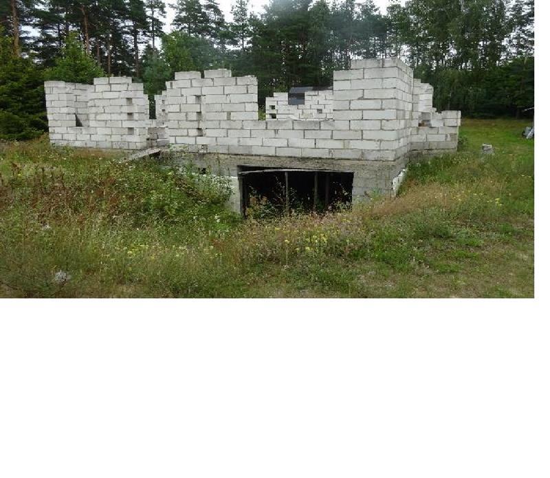 Prawie w centralnej części działki znajduje się rozpoczęta budowa budynku jednorodzinnego. Na dzień oględzin zrealizowano poziom piwnic ze stropem oraz rozpoczęto murowanie ścian parteru. Z uzyskanej dokumentacji wynika, że rozpoczęta budowa dot. budynku mieszkalnego jednorodzinnego, podpiwniczonego, z wbudowanym garażem, i z poddaszem użytkowym.
