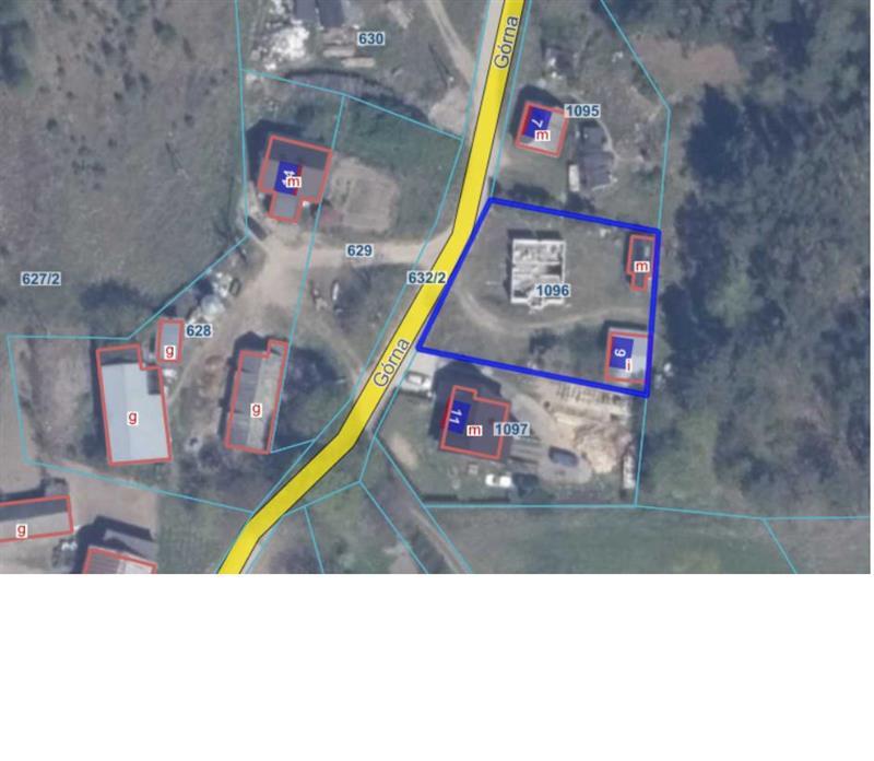 Nieruchomość zlokalizowana jest przy ul. Górna 9, z bezpośrednim dostępem do ulicy (droga w sąsiedztwie przedmiotowej nieruchomości utwardzona ażurowymi płytami betonowymi, własność gminy). Działka nr 1096 obszaru 934 m2 ma kształt dosyć regularnego wieloboku. Teren działki stosunkowo płaski, słabo zagospodarowany, nieogrodzony, w części zabudowany, w części porośnięty trawą i zielenią wysoką. Sąsiedztwo od strony północnej i południowej stanowią działki zabudowane budynkami mieszkalnymi z zabudową towarzyszącą. Od strony wschodniej przedmiotowa działka graniczy z terenem zadrzewionym, a od strony zachodniej przylega do drogi dojazdowej – ul. Górnej. Teren nieruchomości w części zabudowany budynkiem mieszkalnym jednorodzinnym, budynkiem gospodarczym oraz rozpoczętą budową domu jednorodzinnego (podpiwniczonego z wbudowanym garażem w poziomie piwnic). Poza zabudową teren słabo zagospodarowany, nieurządzony, w części porośnięty trawą i krzakami. Działka nie ogrodzona.