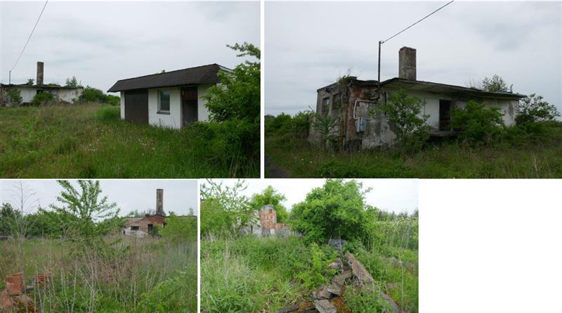 Powierzchnia użytkowa części budynku z podpiwniczeniem (wymiary istniejących pomieszczeń): 14,97m2 + 18,40m2 + 10,26m2 + 3,12m2 + 11.09m2 + 2,36m2 = 60,20m2. Klatka schodowa(wejście do piwnicy): 4,30m2. Piwnice: 30,33m2 + 27,47m2 = 57,80m2. Konstrukcja murowana, stan techniczny budynku: zły, naprawa istniejących elementów z uwagi na zużycie techniczne i funkcjonalne jest nie opłacalna.