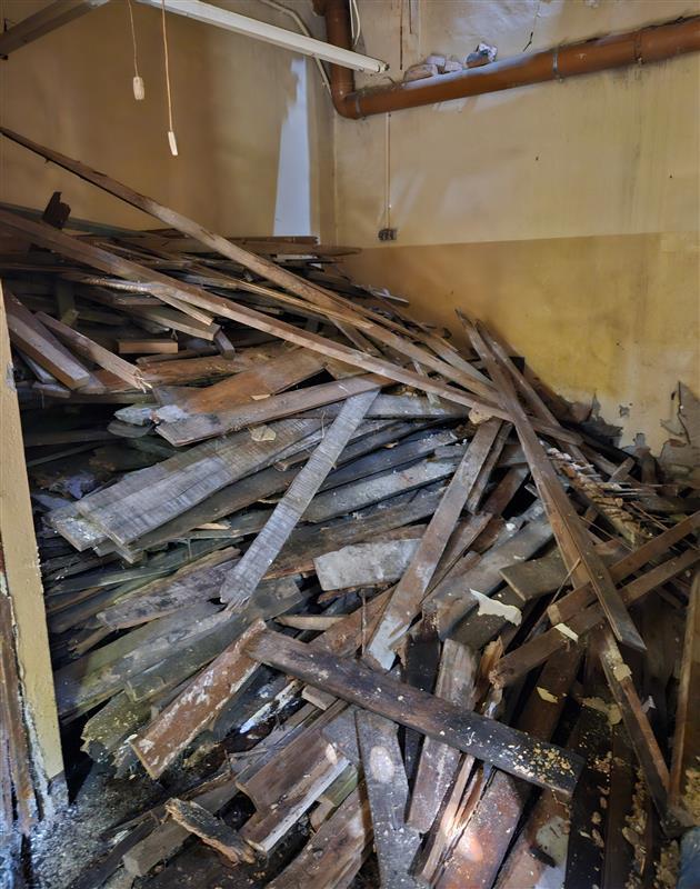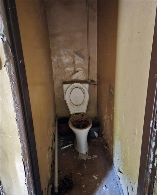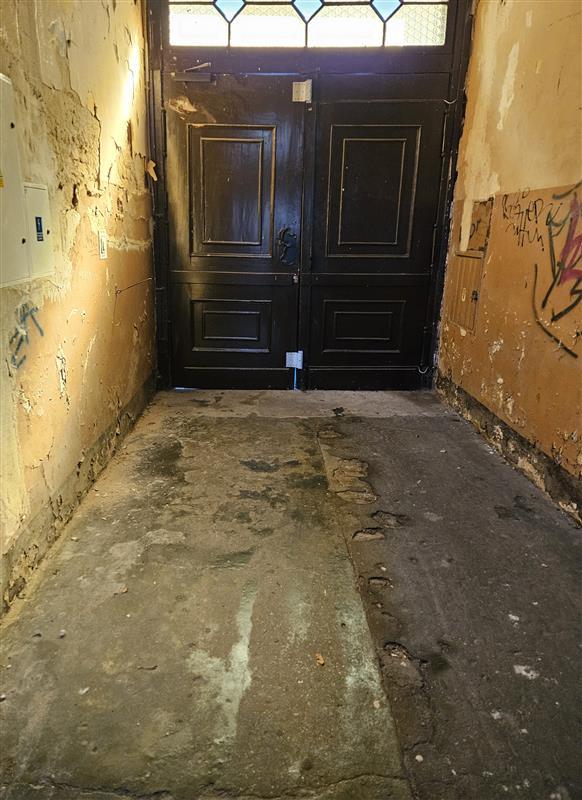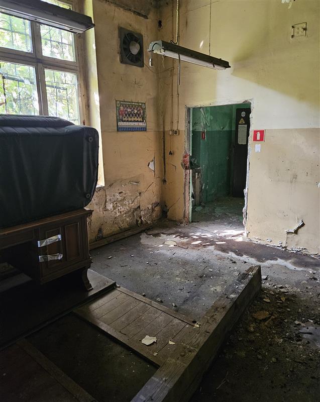 Lokal w złym stanie technicznym, wymaga kapitalnego remontu. Tynki oraz powierzchnie malarskie są znacznie zniszczone, miejscami odpadające. Dach w kilku pomieszczeniach uległ poważnym uszkodzeniom, co prowadzi do przecieków i wilgoci we wnętrzu. Stolarka okienna drewniana skrzynkowa w bardzo złym stanie technicznym, okna nieszczelne, co powoduje dodatkowe uszkodzenia ścian w wyniku penetracji wilgoci. Stolarka drzwiowa również wymaga całkowitej wymiany z powodu znacznych zniszczeń. Brak ogrzewania oraz jakichkolwiek śladów funkcjonującej instalacji c.o. Instalacje elektryczne są uszkodzone, przewody odkryte i niezabezpieczone. Pomieszczenia sanitarne zdewastowane, brak podstawowego wyposażenia. Widoczne są ślady intensywnego zalania i długotrwałego zawilgocenia, co wpływa na strukturę ścian i stropów. Na dzień oględzin nieruchomości budynek nieużytkowany oraz nie nadaje się.