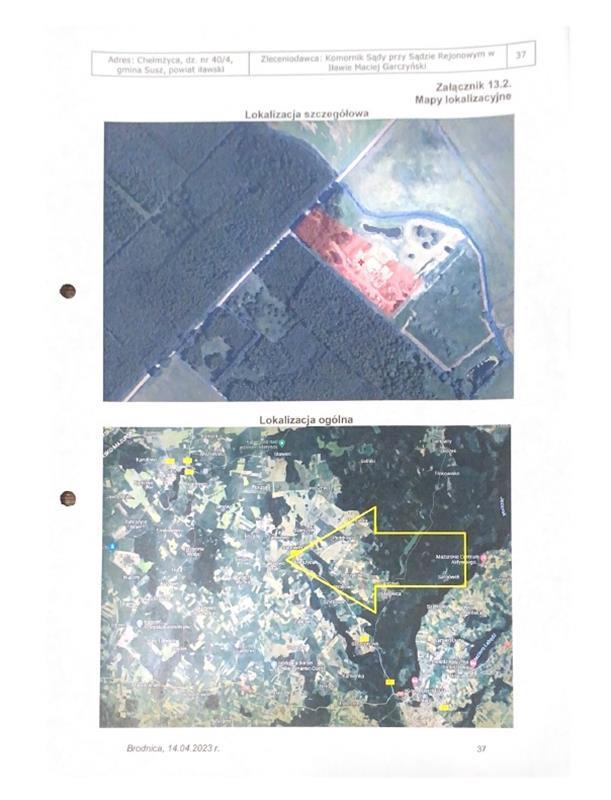 - nieruchomości położonej przy -,Chełmżyca, 14-240 gm. Susz, dla której Sąd Rejonowy w Iławie Wydział Ksiąg Wieczystych (adres: ul. ul. Kopernika 4B, Iława, 14-200 Iława) prowadzi księgę wieczystą o numerze EL1I/00044623/0.