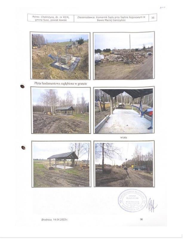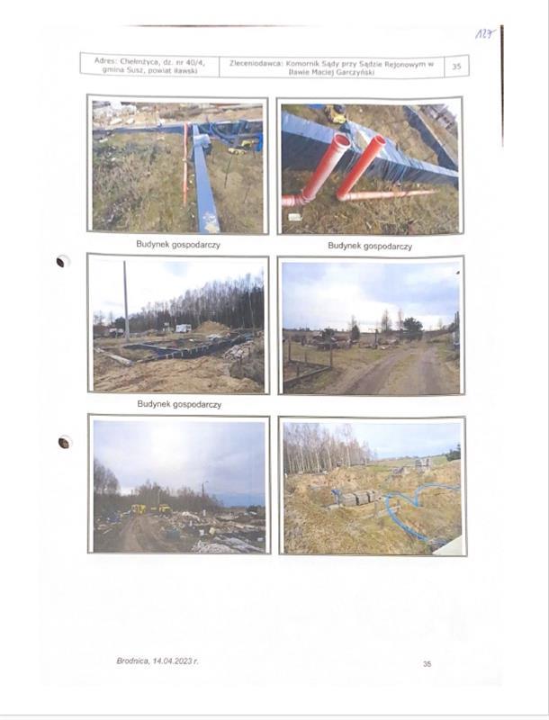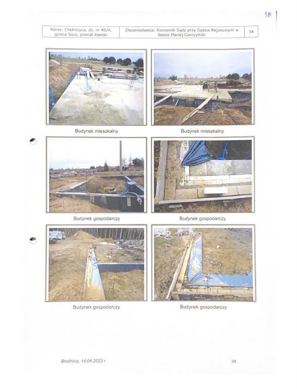 Nieruchomość położona w Chełmżyca, gm. Susz, dla której Sąd Rejonowy w Iławie prowadzi księgę KW EL1I 44623/0 stanowiącej działkę gruntu nr 40/4 o powierzchni 0,7699 ha z rozpoczętą budową budynku mieszkalnego o P.U. 257,26 m2 oraz budynku gospodarczego o P.U. 93,76 m2 (zaawansowanie prac ok. 10%).