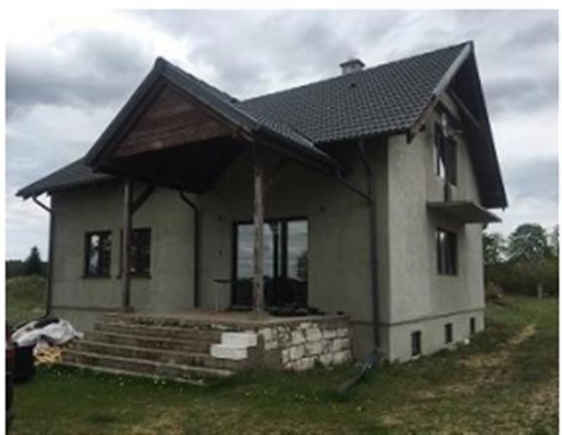Przedmiotem licytacji jest nieruchomość gruntowa działka gruntu nr 26 o pow. 0,4300 ha zabudowana budynkiem mieszkalnym jednorodzinnym o pow. użytkowej 207,36 m2. Budynek mieszkalny składa się salonu z kominkiem, trzech pokoi, kuchni, łazienki, korytarza i wiatrołapu.