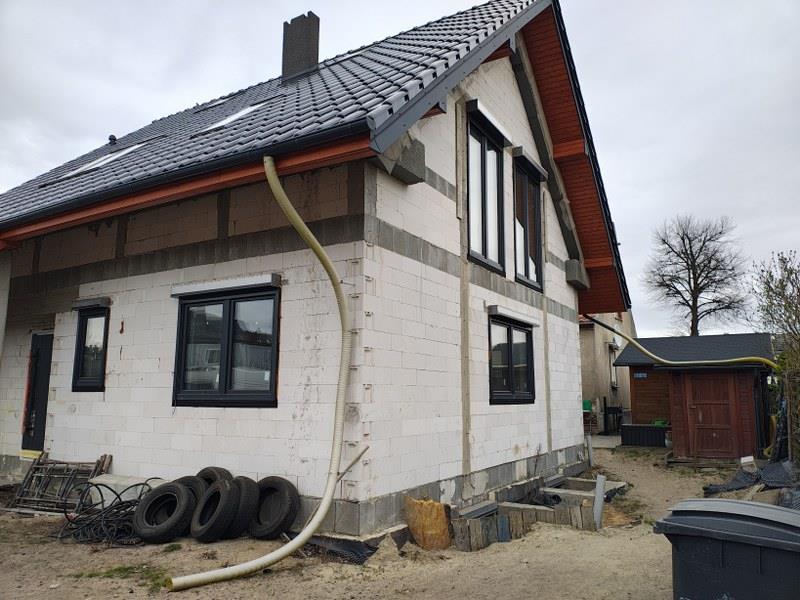 - powierzchnia zabudowy 142,64 m2 + obmurowanie okien piwnicy 4,57 m2