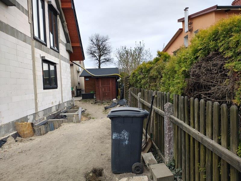 Budynek A to budynek mieszkalny jednorodzinny, parterowy z poddaszem mieszkalnym, przykryty dachem dwuspadowym w konstrukcji drewnianej, pokryty dachówką cementową - widoczne braki kilku dachówek. Budynek wolnostojący. Obiekt wykonany w technologii tradycyjnej, murowanej. Rok budowy - lata ’30 ubiegłego stulecia. Z zewnątrz widoczne okna pcv, zamontowane dodatkowe sprzęty takie jak: klimatyzator bądź pompa ciepła - brak możliwości zweryfikowania z odległości, w części okien rolety zewnętrzne. Na teren posesji wjeżdża się poprzez niską dwuskrzydłową bramę otwieraną ręcznie, wjazd jest utwardzony płytami betonowymi ażurowymi. Na terenie posesji znajduje się wiata ogrodowa - altana; przed budynkiem - od strony alei Poznańskiej znajduje się ogród ozdobny i podjazd utwardzony polbrukiem prowadzący do bramy posesji.