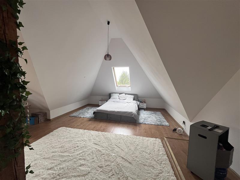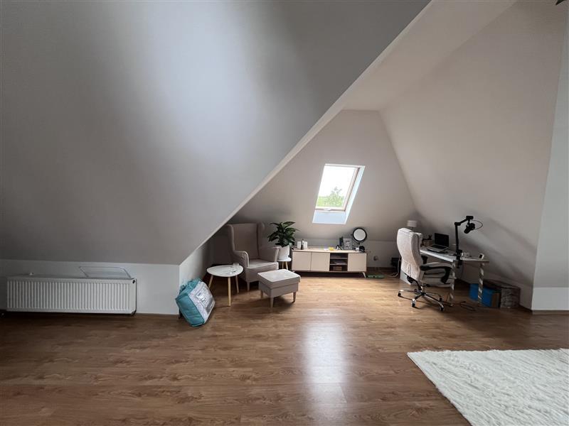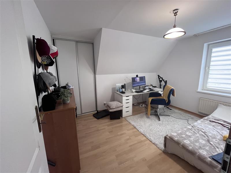 - na poziomie wyższym jest pokój, łazienka i garderoba