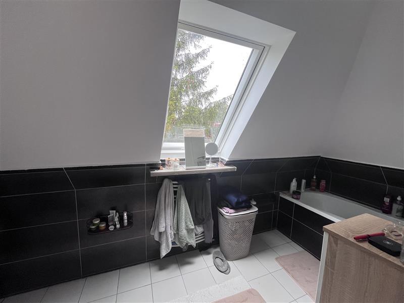 - w łazience na ścianach płytki ceramiczne