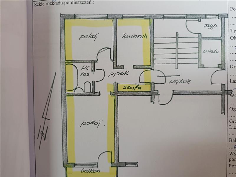 Jest to lokal mieszkalny o powierzchni użytkowej 42,98 m2. Lokal znajduje się na szóstym piętrze i składa się z dwóch pokoi, kuchni, łazienki z WC i przedpokoju. Mieszkanie jest rozkładowe, położone szczytowo. Do lokalu przynależy pomieszczenie gospodarcze w piwnicy budynku o powierzchni 2,20 m2. Okna na stronę południową i północną. Mieszkanie posiada balkon od strony południowej o powierzchni 1,80 m2. Stolarka okienna w białych ramach z PCV. W pokojach na podłodze wylewki cementowe i panele podłogowe. Na podłodze w kuchni, łazience i przedpokoju położona jest terakota. Mieszkanie posiada następujące instalacje: elektryczną, gazową, wodę ciepłą i zimną z sieci miejskiej, kanalizację, centralne ogrzewanie z sieci miejskiej, linię telekomunikacyjną, domofon. W mieszkaniu znajdują się liczniki gazu i elektryczności.