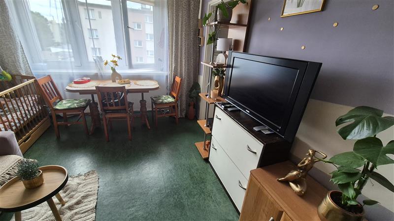 Lokal nr 11 położony jest w budynku nr 2 przy ulicy B. Krzywoustego. Lokal składa się z pomieszczeń położonych na czwartej kondygnacji budynku – tj. trzecim piętrze. Powierzchnia użytkowa lokalu wynosi 34,64 m2. Przedmiotowy lokal składa się z dwóch pokoi (w tym jeden z przejściem do kuchni), kuchni, łazienki z wc, przedpokoju. Mieszkanie jednostronne - okna w lokalu usytuowane są w kierunku południowym. Stolarka okienna PCV, z parapetami wewnętrznymi drewnianymi i lastrico, i zewnętrznymi metalowymi. Ściany tynkowane cementowo-wapienne, malowane farbami emulsyjnymi, w kuchni i w łazience częściową okładzina ścienna z płytek ceramicznych. Posadzka w przedpokoju i w pokojach z płytek PCV (widoczne miejscowe uszkodzenia i ubytki), w kuchni linoleum, łazience wykonana z płytek ceramicznych. w pokojach klepka parkietowa. Stolarka drzwiowa zewnętrzna drewniana, wewnętrzna z płycinowa szkolna. Lokal wyposażono w instalację wodno-kanalizacyjną, elektryczną, gazową, teletechniczną. Ogrzewanie centralne z sieci miejskiej z grzejnikami żeliwnymi, żeberkowymi. Lokal bez balkonu. Lokal znajduje się w średnim stanie technicznym. Standard elementów wykończeniowych niższy. Ponadto uprawnionym przysługuje prawo korzystania na zasadzie wyłączności z piwnicy usytuowanej na kondygnacji -1.