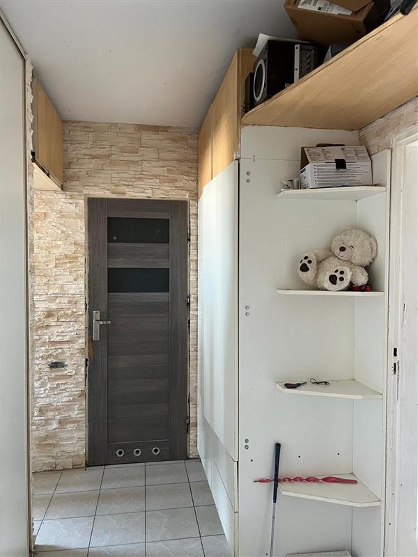 Lokal ma funkcję mieszkalną. W pokoju nr 1 (z balkonem) ściany pomalowane farbą emulsyjną, jedna ze ścian wyłożona kamieniem ozdobnym, na posadzce panele znacznie zniszczone. W pokoju nr 2 ściany pomalowane farbą emulsyjną, na posadzce panele znacznie zniszczone. W przedpokoju ściany wyłożone kamieniem ozdobnym, na posadzce płytki zniszczone. W kuchni ściany w części wyłożone płytkami, w części pomalowane farbą emulsyjną, na posadzce płytki. W łazience z wc ściany w całości wyłożone płytkami, na posadzce płytki, na suficie widoczne wykwity pleśni. W całym mieszkaniu okna pcv, drzwi wejściowe płytowe zniszczone. Mieszkanie wymaga wykonania remontu.