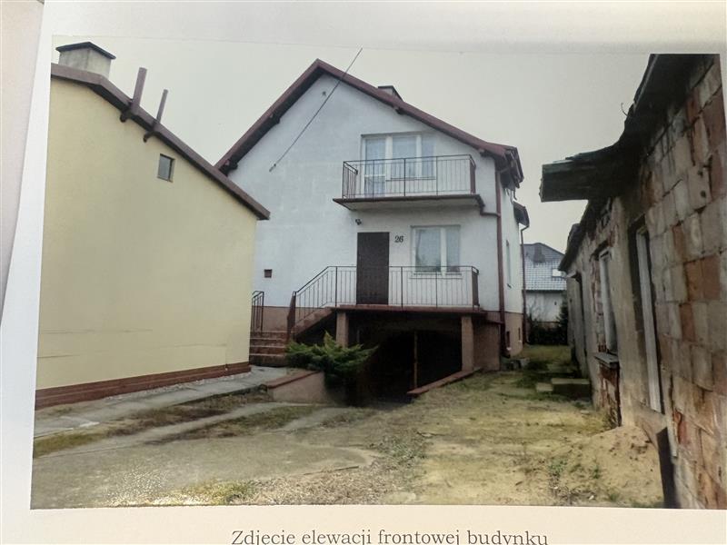 udział 3/4 w nieruchomości niewydzielonej położonej na działce gruntu nr 43/2 o pow. 477 m kw., zabudowanej budynkiem mieszkalnym parterowym z poddaszem użytkowym, podpiwniczonym. Budynek mieszkalny o pow. zabudowy wg kartoteki budynków 85 m kw. posadowiony na nieruchomości (działka nr 43/2) i na działce sąsiada. Budynek wytyczony i budowany niezgodnie z zatwierdzonym projektem budowlanym. Budynek nie oddany do użytkowania. Na nieruchomości znajduje się również parterowy budynek gospodarczy o pow. zabudowy wg kartoteki budynków 76 m kw., w stanie znacznego zużycia.