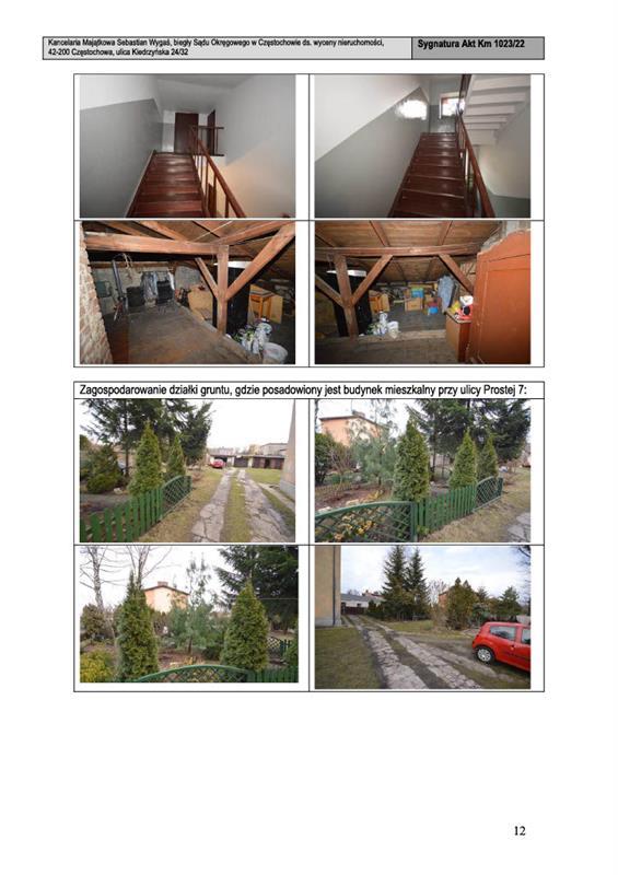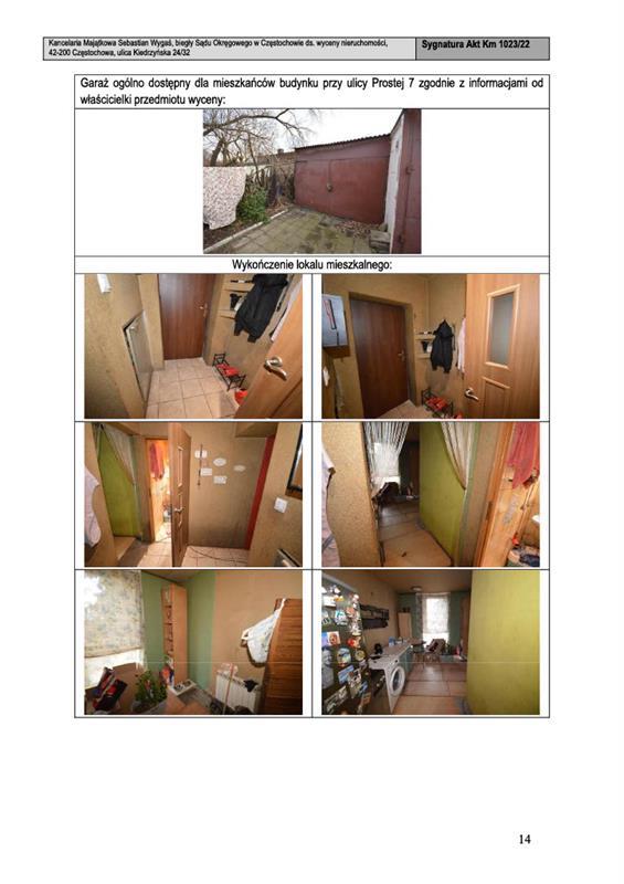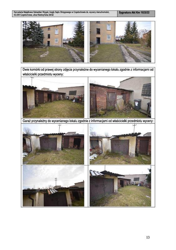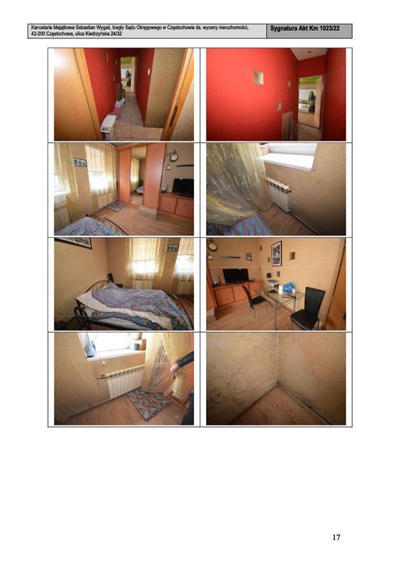 Zgodnie z art. 953 § 1 pkt 5 kpc w ciągu dwóch tygodni przed licytacją wolno oglądać wyżej wymienioną nieruchomość w dni powszednie od godz. 10:00 do godz. 14:00 natomiast protokół opisu i oszacowania wraz z operatem szacunkowym nieruchomości będzie można przeglądać w Sądzie Rejonowym w Częstochowie, Wydziale XV Cywilnym Wykonawczym (należy powołać się na sygnaturę akt sądowych: XV Co 2051/24) w godzinach urzędowania Sądu.