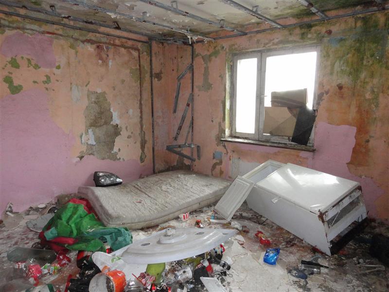 Ogólny stan techniczny i standard wykończenia lokalu określono jako mierny - lokal zdewastowany, przeznaczony do kompleksowego remontu.
