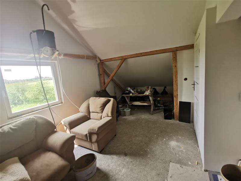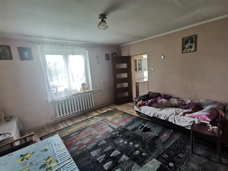 Nieruchomość zabudowana murowanym budynkiem mieszkalnym o pow. zabudowy 131 m2, rok budowy: 1982, stan techniczny budynku dobry; gliniano - murowanym budynkiem gospodarczym ( garaż/magazyn) o pow. zabudowy 110 m2, rok budowy: lata 50/80 - te XX wieku, stan techniczny budynku średni; murowanym budynkiem gospodarczo - inwentarskim (stodoła/chlewnia) o pow. zabudowy 353 m2, rok budowy: lata 70 - te XX wieku, stan techniczny budynku średni. Łączna pow. zabudowy budynków wynosi 594 m2. Jedna funkcjonalna część działki o pow. 0,5197 ha jest zabudowana, natomiast druga funkcjonalna część działki o pow. 4,5820 ha jest niezabudowana. Nieruchomość obciążona ograniczonym prawem rzeczowym: dożywotnia służebność osobistą na rzecz osoby urodzonej w 1930r. Wartość 100 % nieruchomości to kwota 477 800,00 zł. Wartość nieruchomości bez uwzględnienia ograniczonych praw rzeczowych to kwota 499 600,00 zł. Wartość udziału w nieruchomości bez uwzględnienia ograniczonych praw rzeczowych to kwota 166 533,33 zł.