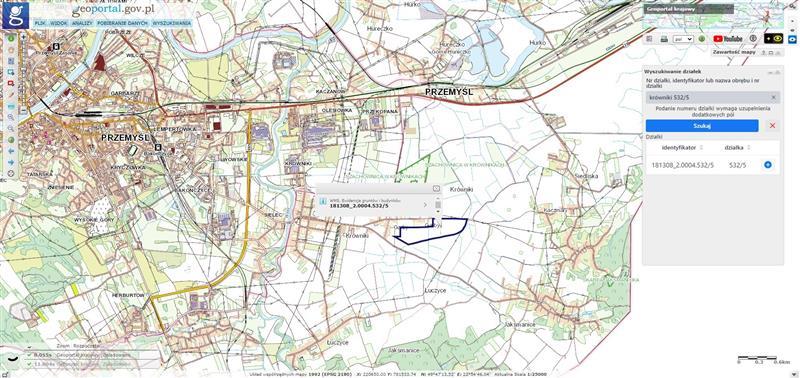 - nieruchomości położonej przy w miejscowości Krówniki stanowiącej działkę nr 532/5, poczta:, 37-705 Przemyśl, dla której Sąd Rejonowy w Przemyślu VI Wydział Ksiąg Wieczystych (adres: ul. Mickiewicza 14/37-700, Przemyśl, 37-700 Przemyśl) prowadzi księgę wieczystą o numerze PR1P/00104518/3.
