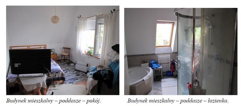 Działka 149/1 zabudowana budynkiem mieszkalnym parterowym z poddaszem użytkowym, murowanym budynkiem gospodarczym i drewnianą szopą. Budynek mieszkalny jednorodzinny według typowego projektu „W6/76". Realizowany w latach 1998-2000. Wolnostojący dom jednorodzinny, niepodpiwniczony z wbudowanym garażem. Na parterze od wejścia do budynku część reprezentacyjna: hol, sanitariat, gabinet oraz wejście do salonu. Obszerny salon z kominkiem w wyjściem na zadaszony taras od strony wschodniej. Nad salonem otwarta przestrzeń i antresola z trzema sypialniami na poddaszu. W głębi budynku kuchnia, jadalnia i pomieszczenie gospodarcze (pralnia, kotłownia, składzik). Nad budynkiem dach dwuspadowy asymetryczny z oknami połaciowymi Velux.