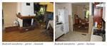 Na pokojach i jadalni panele podłogowe, drewniane, w łazienkach, kuchni, pomieszczeniu gospodarczym posadzki z płytek terakotowych.