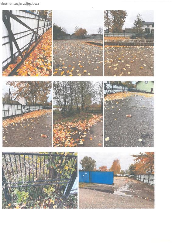 Nieruchomość gruntowa niezabudowana, teren działki utwardzony betonem, ogrodzony; wjazd na działkę następuje od strony południowej bramą metalową, przesuwną. W zachodnich granicach działki znajduje się waga najazdowa. Nieruchomość posiada dostęp do drogi - dojazd następuje drogą asfaltową.