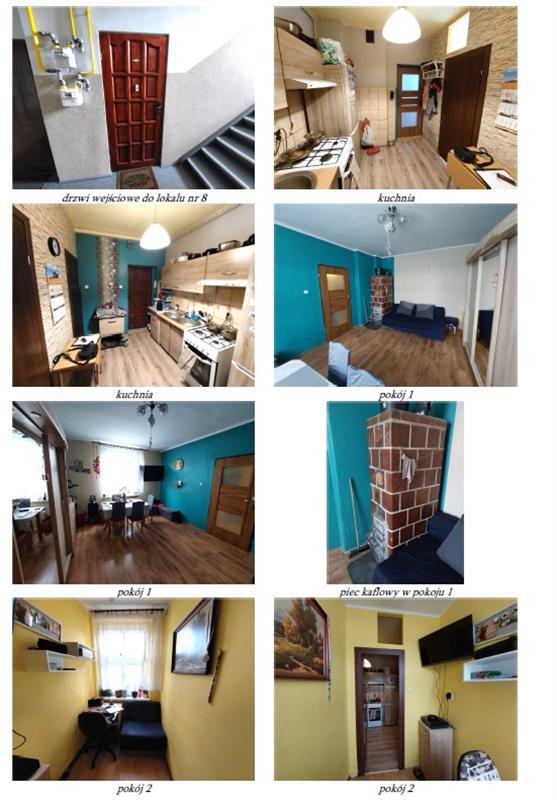 z dwóch pokoi, kuchni, łazienki i wspólnego wc. Powierzchnia użytkowa lokalu wynosi 32,59 m2. Do lokalu przynależy piwnica i pomieszczenie gospodarcze.