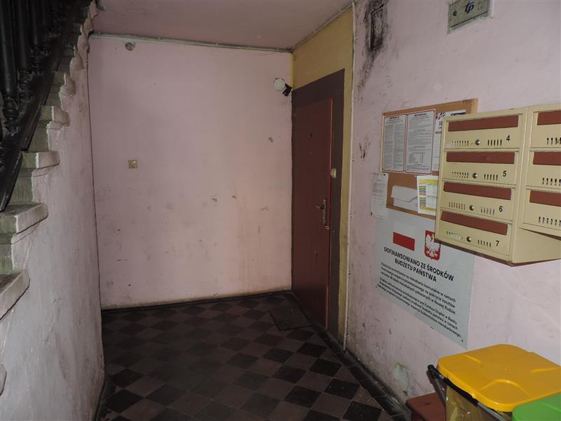 Przedmiotem licytacji jest lokal mieszkalny nr 2 o pow. użytkowej 40,34 m2, zlokalizowany na parterze budynku, w którego skład wchodzą: korytarz, pokój, pokój, kuchnia, toaleta. Do lokalu przynależy piwnica o pow. 1,85 m2, komórka w budynku o pow. 12,09 m2 oraz komórka w budynku gospodarczym o pow. 5,15 m2 (łączna pow. 19,09 m2). Pole powierzchni użytkowej lokalu wraz z powierzchnią pomieszczeń przynależnych wynosi: 59,43 m2. Funkcja lokalu jednorodna mieszkalna. Lokal w stanie technicznym do remontu. Pomieszczenia są zabrudzone i zaniedbane. Materiały wykończeniowe wykazują wysoki stopień zużycia technicznego. Instalacja elektryczna, wodociągowa oraz kanalizacyjna z ok. 2000r. Okna PCV z ok. 2010r. Podłogi drewniane, pokryte zniszczoną wykładziną. W kuchni oraz w toalecie na podłodze spękane płytki ceramiczne. Ściany otynkowane, pokryte farbą, zabrudzone. W kuchni przy aneksie kuchennym ściany pokryte płytkami ceramicznymi, w toalecie ściany pokryte płytkami ceramicznymi. Kuchnia wyposażona jest w dwukomorowy zlew kuchenny oraz starą zabudowę kuchenną, toaleta wyposażona jest w wc, kran z prysznicem oraz przyłącze na pralkę. Sanitariat w stanie technicznym do wymiany. Pomieszczenie toalety jest długie i wąskie. Lokal ogrzewany jest za pomocą pieca kaflowego w kuchni oraz pieca kaflowego zamontowanego pomiędzy korytarzem a dużym pokojem. Ciepła woda z podkowy. Lokal posiada niski potencjał inwestycyjny, pomieszczenia są w stanie technicznym do remontu, dodatkowo mały pokój to pokój przechodni. W lokalu brak przynależności zwiększających jego wartość. Osoby zainteresowane udziałem w licytacji mogą przeglądać operat szacunkowy nieruchomości w Kancelarii komornika od pon. do pt. w godzinach 8:00-14:30.