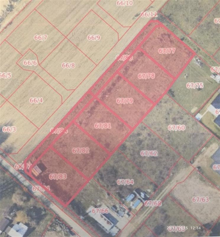 nieruchomość gruntowa. Teren nieruchomości jest niezabudowany i nieużytkowany. Nieruchomość objęta licytacją stanowi obszar inwestycyjny z funkcjonalnie wydzielonymi działkami, tj.: działka nr 67/77 z przeznaczeniem na cele zabudowy jednorodzinnej i zabudowy usługowej wraz z udziałami po 1/6 w działkach o numerach 67/80 i 67/84, z przeznaczeniem pod drogę wewnętrzną.