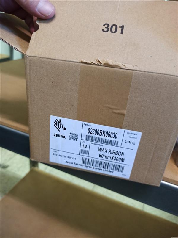 | 14 | Taśma barwiąca 60x300 wosk Zebra 2300 (nr kat. 02300BK06030) | 9 | 152,55 zł 124,02 zł netto + 23% VAT | 114,41 zł* | 6,00 zł |