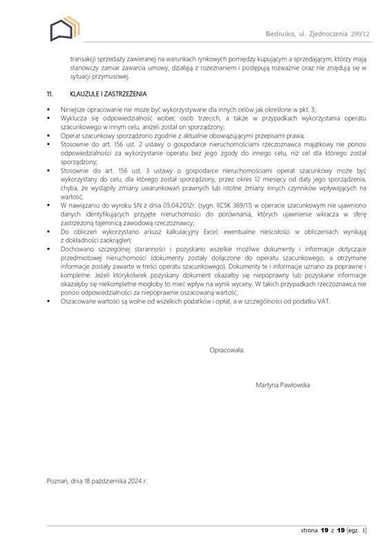- lokalu mieszkalnego położonego przy Zjednoczenia 299/12, 62-003 Biedrusko, dla którego lokal mieszkalny (adres: ul. Zjednoczenia 299/12, Biedrusko, 62-003 Biedrusko) prowadzi księgę wieczystą o numerze PO1P/00222896/3.