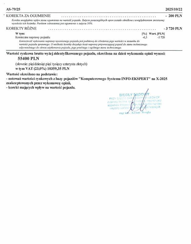 Podczas oględzin ww. pojazdu biegły stwierdził: