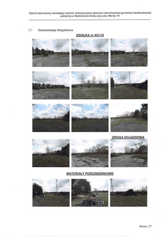 Opis nieruchomości gruntowej Działka nr 441/10 o kształcie wieloboka nieregularnego zbliżonego do figury trapezu. Działka w całości porośnięta zielenią samosiewną trawiastą oraz w części samosiejkami i drzewostanem.
