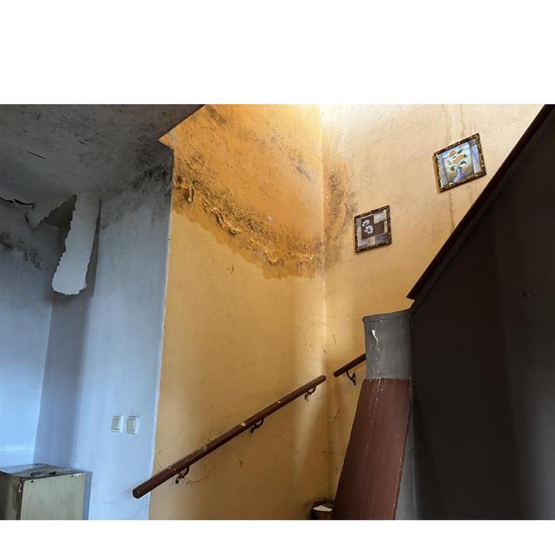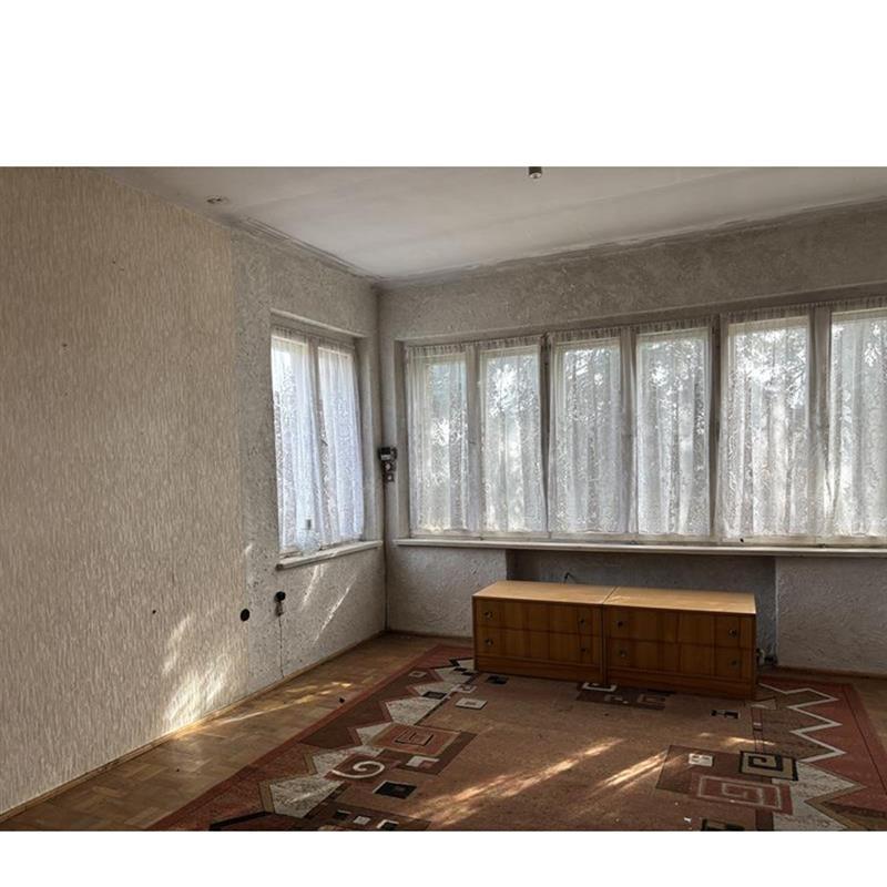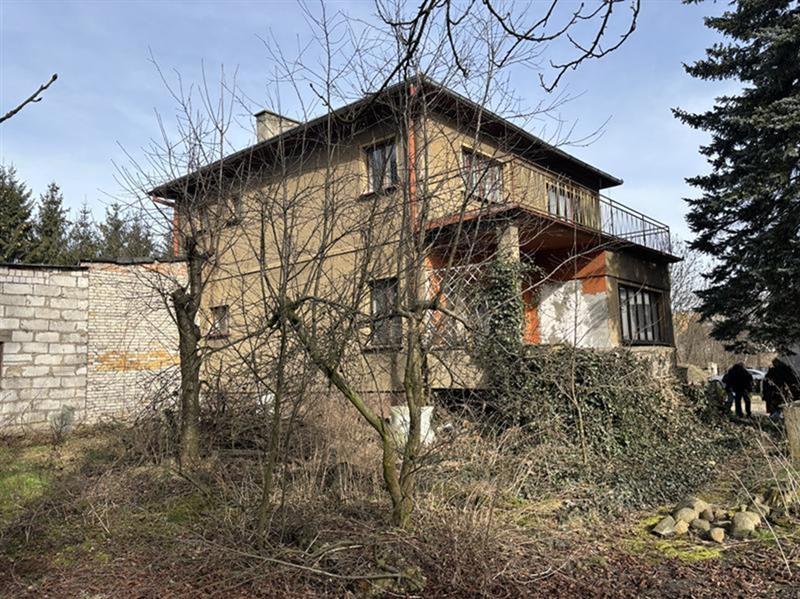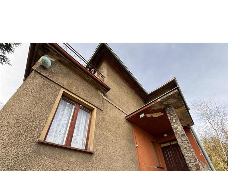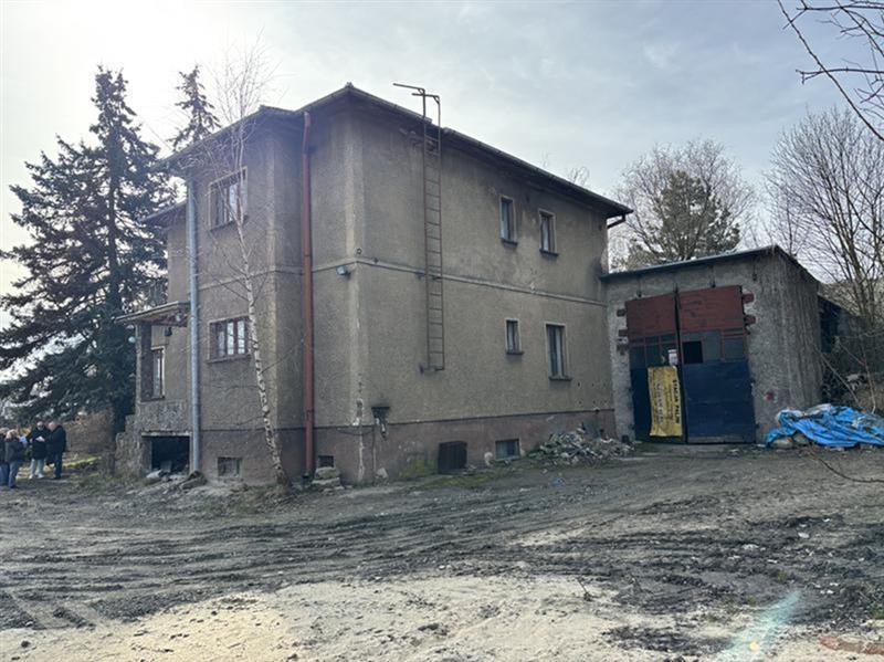 -budynek mieszkalny (nr ew. 28), kilkudziesięcioletni, dwukondygnacyjny, podpiwniczony, z dachem płaskim krytym papą w stanie do kapitalnego remontu o powierzchni zabudowy Pz = 102 m2;