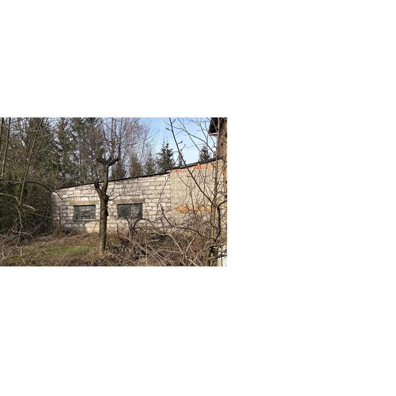 -budynek garażowy (nr ew. 27), kilkudziesięcioletni, jednokondygnacyjny, niepodpiwniczony, z dachem płaskim krytym papą w stanie do dewastacji, o powierzchni zabudowy Pz = 75 m2;