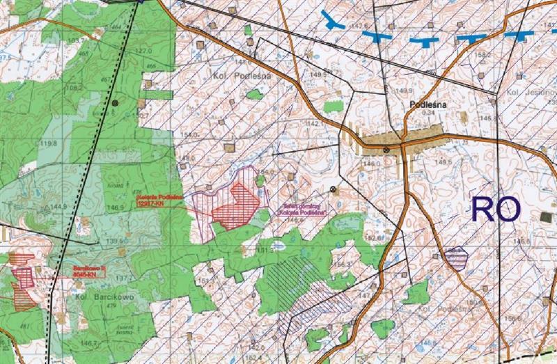 - grunty orne, działka ewidencyjna nr 161/18 o powierzchni 42,9038 ha, położona w obrębie Podleśna, gmina Dobre Miasto, powiat olsztyński, stanowiąca nieruchomość gruntową niezabudowaną (grunty orne), dla której Sąd Rejonowy w Olsztynie VI Wydział Ksiąg Wieczystych prowadzi księgę o numerze KW OL1O/00104528/9. W chwili obecnej dla obszaru, na którym położona jest działka nr 161/18 w obrębie Podleśna, gmina Dobre Miasto brak jest obowiązującego planu zagospodarowania przestrzennego. Zgodnie ze Zmianą studium uwarunkowań i kierunków zagospodarowania przestrzennego miasta i gminy Dobre Miasto (Uchwała nr XXIX/158/2020 Rady Miejskiej w Dobrym Mieście z dnia 25.06.2020 r.) przedmiotowa działka nr 161/18 położona jest na terenach rolniczych, na części wyznaczono teren górniczy. Na terenie działki występuje złoże kopalin naturalnych, zaewidencjonowane pod nr Podleśna Kolonia 12317KN. Dla działki nr 161/18 nie wydano decyzji o ustaleniu warunków zabudowy lub lokalizacji inwestycji celu publicznego. W granicach działki na powierzchni 7,85 ha znajduje się udokumentowane złoże kruszywa naturalnego w kat. C1+ C2Podleśna Kolonia. Pow. obszaru dokumentowanego 21,95 ha. Licytacja zakończy się w dniu 23-01-2025 o godzinie 10:00.