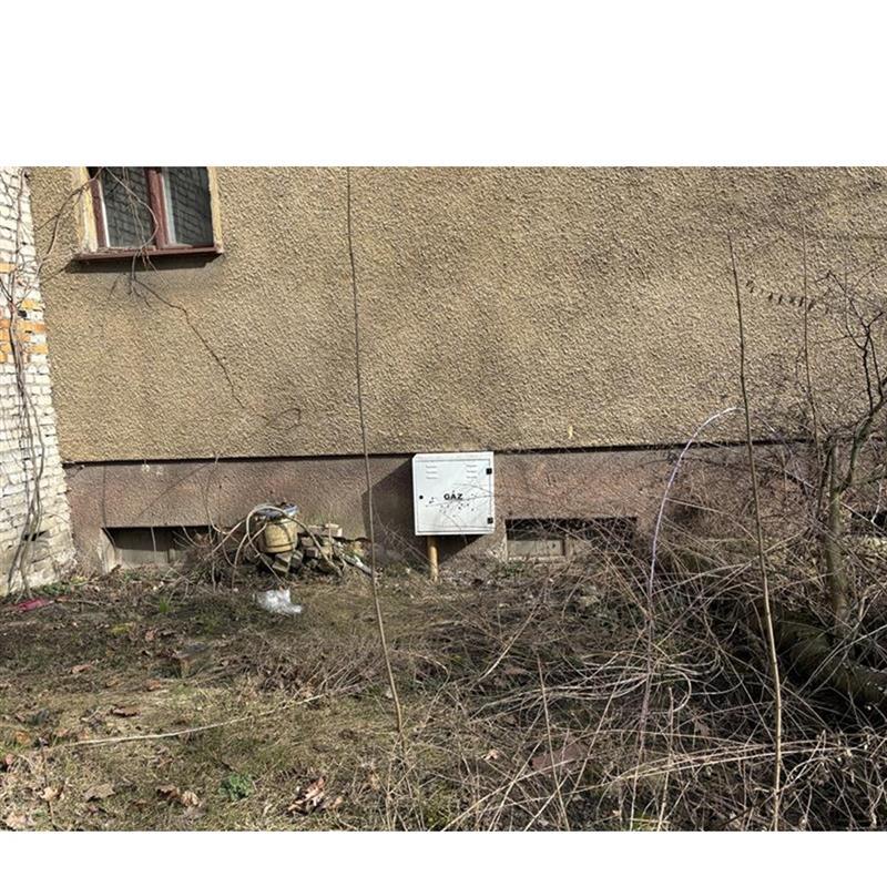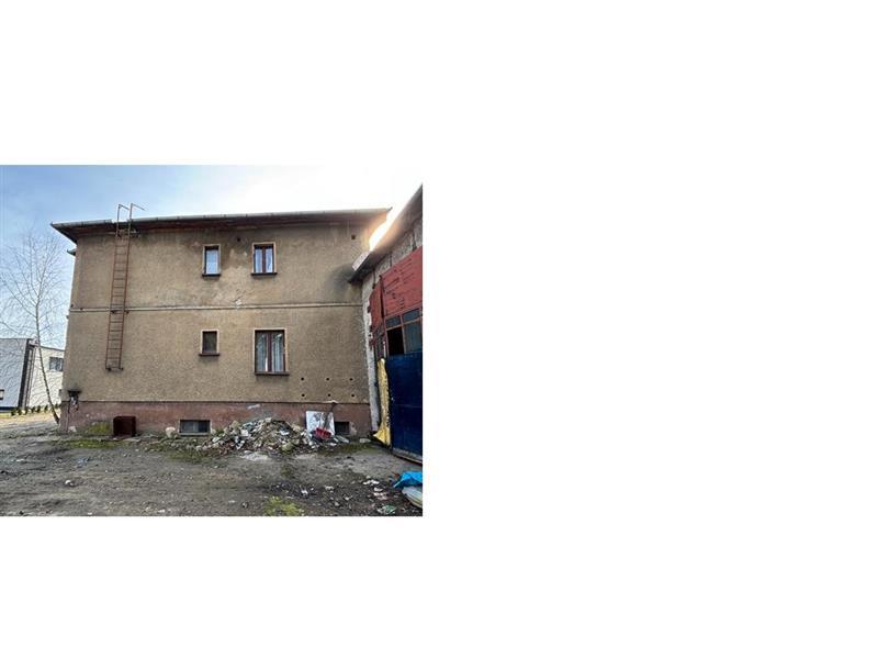 -budynek mieszkalny (nr ew. 28), kilkudziesięcioletni, dwukondygnacyjny, podpiwniczony, z dachem płaskim krytym papą w stanie do kapitalnego remontu o powierzchni zabudowy Pz = 102 m2;