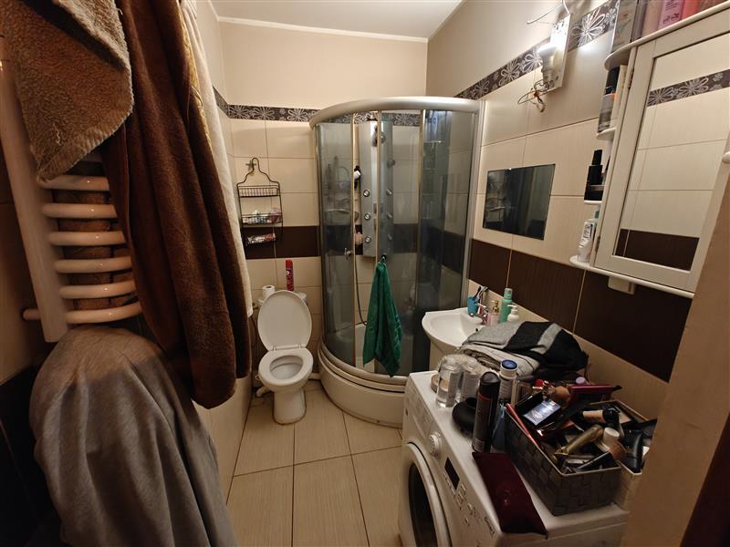 W skład powierzchni użytkowej przedmiotowego lokalu mieszkalnego wchodzą następujące pomieszczenia: 2 pokoje, kuchnia, łazienka z WC, przedpokój. Do lokalu przynależy komórka lokatorska o powierzchni 2,21 m². Lokal wyposażony jest w instalacje: elektryczną, wodną (ciepła woda z sieci), kanalizacyjną, gazową, c.o. (ogrzewanie zdalaczynne, kaloryfery płytowe), domofon. Stan techniczny i standard lokalu dobry.
