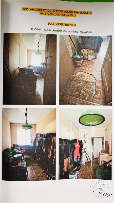 Nieruchomość lokalowa według księgi wieczystej (nazwa w dziale I-O jako lokal mieszkalny) składa się z jednej izby: kuchni i stan ten jest zgodny ze stanem faktycznym na dzień 30-06-2025 r.. Zgodnie z art. 2 ust. 2 ustawy z dnia 24 czerwca 1994r. o własności lokali (t.j. Dz. U. z 2021 r. poz. 1048) przedmiotowa nieruchomość jest samodzielnym lokalem mieszkalnym (w rozumieniu tej ustawy) i stanowi odrębną nieruchomość. Powierzchnia użytkowa lokalu wynosi 11,20 m2. Brak balkonu. Standard lokalu – niski. Do lokalu nr 11 brak pomieszczeń przynależnych. Lokal położony jest na 3 kondygnacji domu mieszkalnego wielorodzinnego, w zabudowie wolnostojącej. Budynek 3 kondygnacyjny z poddaszem użytkowym, podpiwniczony, wykonany w technologii tradycyjnej (murowany). Położenie budynku – na działce gruntowej nr 554/3 o pow. 909 m2, bezpośrednio przy ul. Polnej. Lokal wyposażony w energię elektryczną, wodę i kanalizację. Brak w lokalu ciepłej wody. Ogrzewanie etażowe, piec CO usytuowany w kuchni. W budynku brak windy osobowej. Wejście do budynku od podwórza. Udział związany z własnością lokalu w nieruchomości KW SW1W/00048872/0 wynosi 182/10000. Ulica Polna objęta została planem rewitalizacji, zaś sama nieruchomość budynkowa nie. Nieruchomość nie podlega ochronie konserwatorskiej. Budynek nr 12 położony w obszarze rewitalizacji miasta. Budynek nie posiada świadectwa charakterystyki energetycznej. Lokalizacja nieruchomości: 58-301 Wałbrzych (Obr. Nowe miasto nr 26), ul. Polna 12/11, powiat m. Wałbrzych, woj. dolnośląskie.