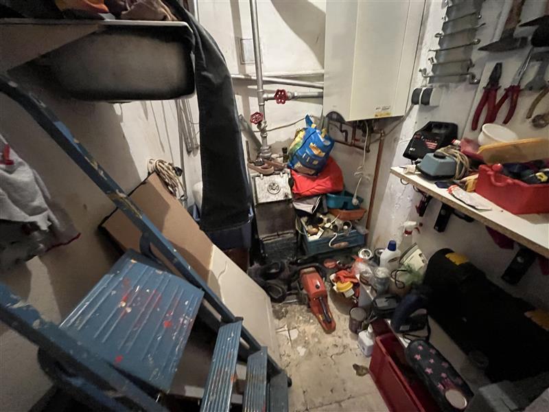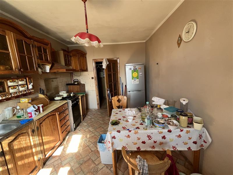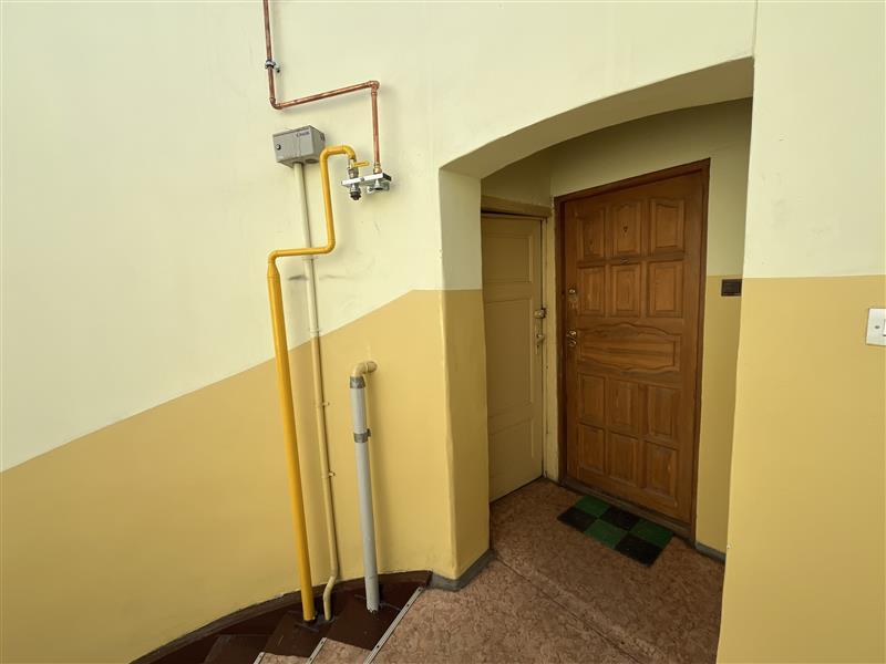 Lokal o powierzchni użytkowej 102,50 m2 położony jest na III piętrze, tj. na IV kondygnacji nadziemnej poniemieckiego budynku mieszkalnego (o 4 kondygnacjach nadziemnych). Wejście do lokalu dostępne bezpośrednio z klatki schodowej. Lokal według zapisów w Księdze Wieczystej składa się z trzech pokoi, kuchni, garderoby oraz łazienki. Faktycznie, co stwierdzono w dniu wizji, składa się on z trzech pokoi, przedpokoju, garderoby (zaadaptowanej na pomieszczenie pokoju, bez ogrzewania), łazienki, WC oraz kotłowni. Drzwi wejściowe do lokalu drewniane, starego typu. Drzwi wewnętrzne drewniane szklone. Okna w lokalu drewniane, skrzynkowe. Na podłogach deska drewniana, wykładzina PCV oraz panele podłogowe. Ściany nie mają wykonanych gładzi. Łazienka wyposażona w wannę w standardzie lat 80-tych, na podłodze wygładzina PCV, na ścianach płytki. Lokal ogrzewany piecem gazowym dwufunkcyjnym, grzejniki w lokalu żeliwne. Do lokalu przyłączono media: energię elektryczną, wodociągową, kanalizacyjną, gazową. Obecnie lokal jest zamieszkiwany. Ogólny stan techniczny i standard wykończenia lokalu oceniono jako przeciętny.