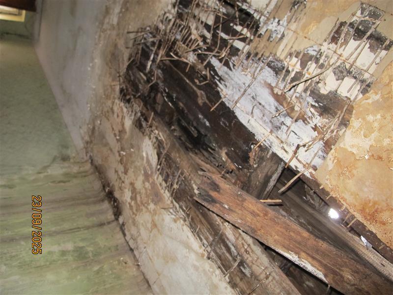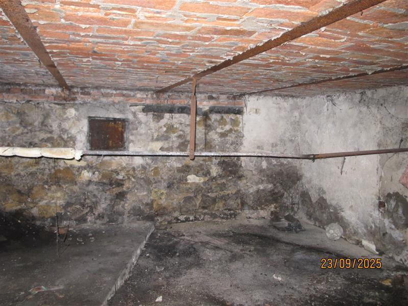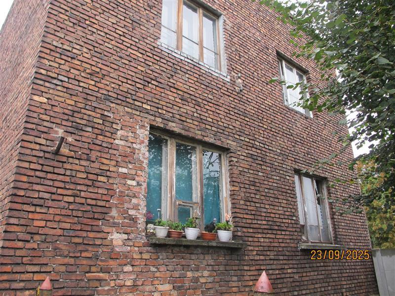 Zabudowę nieruchomości stanowią: wolnostojący, piętrowy, podpiwniczony budynek mieszkalny jednorodzinny, będący w bardzo złym stanie technicznym. Powierzchnia użytkowa budynku mieszkalnego według pomiaru z natury wynosi 113,9 m2 - według formy projektu budowlanego odpowiada ona na parterze: 2 pokoje, łazienka, kuchnia - na piętrze: 2 pokoje, kuchnia. Budynek ten wzniesiono na przełomie lat 1930/1940 - przed II wojną światową lub zaraz po niej, w technologii tradycyjnej, murowanej z cegły, ze stropami masywnymi typu Kleina nad podpiwniczeniem i parterem oraz ze stropodachem drewnianym krytym papą zwykłą na deskowaniu i z podsiębitką i tynkiem na trzcinie od spodu konstrukcji. Drewniany dach budynku jest od dawna nieszczelny przez co dochodzi do ciągłego zawadniania tego dachu, zawadniania stropów, murów, tynków i podłóg, co doprowadziło do daleko posuniętych zniszczeń budynku. Do tego istniejące bardzo skromne, ocalałe wyposażenie budynku (wodociąg oraz stara niesprawna instalacja elektryczna i także piece kaflowe) są powodem, że do uratowania i dalszego remontu nadają się jedynie w budynku mury, stropy Kleina i schody żelbetonowe. Reszta elementów budynku, tj. konstrukcja dachu, jego pokrycie i obróbki, schody drewniane, tynki ścian i sufitów, podłoża i podłogi, stolarka okienna i drzwiowa, instalacje i ogrzewanie budynku, wyposażenie kuchni i miejsc do kąpieli musi ulec całkowitej odbudowie aby budynek nadawał się do zamieszkania. Nieruchomość posiada jedynie podłączenie do sieci wodociągowej. Działka wycenianej nieruchomości ma kształt zbliżony do bardzo wydłużonego prostokąta o wymiarach ok. 12,3 m x 87,5 m. Na nieruchomości - za budynkiem mieszkalnym względem ulicy Wiejskiej znajdują się stare drzewa owocowe i dzikie liściaste. Ogrodzenia boczne są w postaci muru bądź stare z siatki zwykłej, a częściowo z elementów betonowych. Na gruncie nieruchomości znajduje się pryzma gruzu i ziemi.