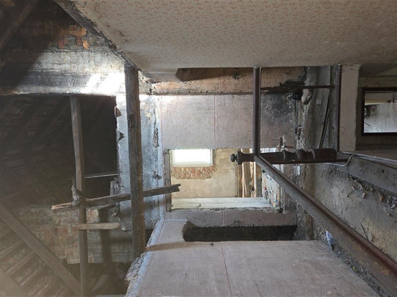 Budynek gospodarczy dobudowany do mieszkalnego – o powierzchni zabudowy 19 m2. Budynek parterowy, murowany z cegły ceramicznej, nieocieplony, otynkowany, na elewacji widoczne liczne pęknięcia oraz odpadający tynk lub nawet brak tynku na dużym obszarze. W/w budynek posiada dach jednospadowy o bardzo dużym koncie nachylenia o konstrukcji drewnianej kryty płytami falistymi z eternitu. Stan techniczny budynku jest bardzo zły.