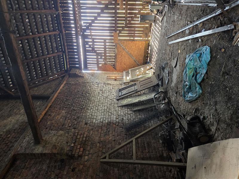 Budynek stodoły – o powierzchni użytkowej 94,84 m2. Budynek parterowy, wysoki, murowany z cegły ceramicznej, nieocieplony i nieotynkowany, posiada dach dwuspadowy o konstrukcji drewnianej kryty dachówką betonową. Bramy wykonane z desek drewnianych. Stan techniczny budynku jest przeciętny.