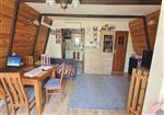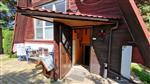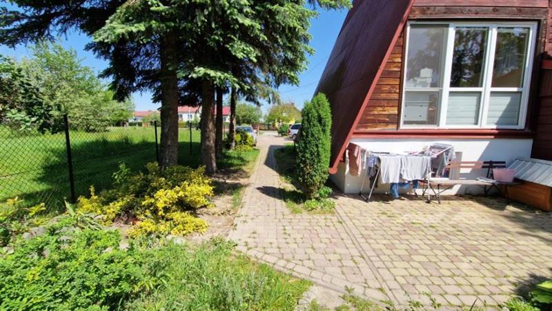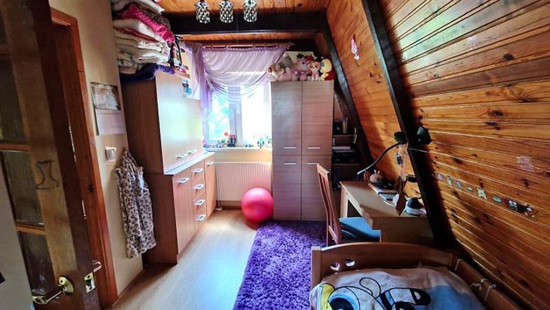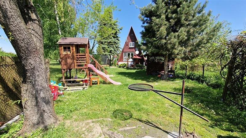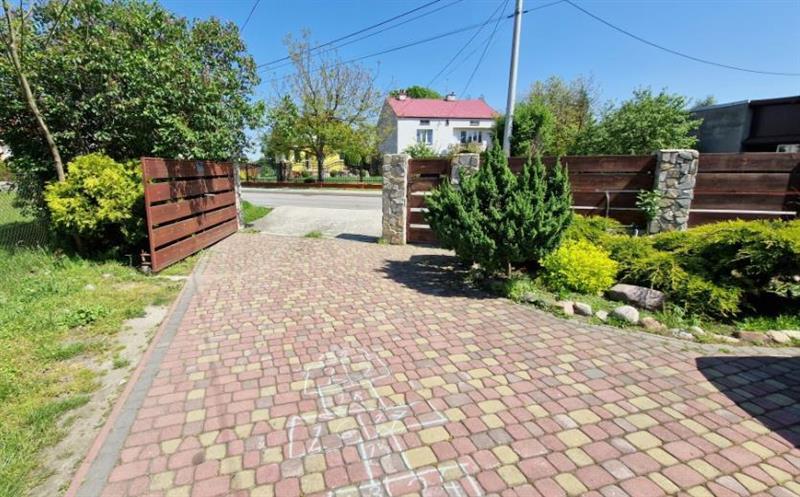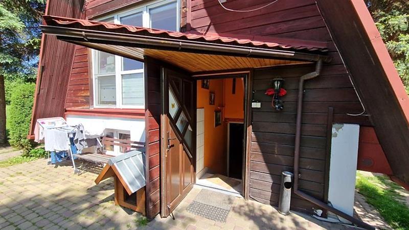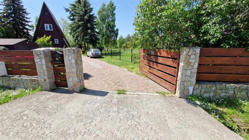 Teren nieruchomości jest dobrze zagospodarowany. Działka ogrodzona jest ogrodzeniem z siatki na metalowych słupach i podmurówce betonowej, a od strony północnej drewnianym ogrodzeniem z podmurówką i słupkami z kamienia. Ogrodzenie od strony wschodniej oraz w części południowej poprowadzone jest niezgodnie z przebiegiem granic ewidencyjnych (ogrodzenie obejmuje teren działki sąsiedniej). Według informacji przekazanych w trakcie oględzin, około 2019 roku przeprowadzono rozgraniczenie nieruchomości – widoczne na działce wkopane słupki geodezyjne stanowiące znak graniczny działki. Na dzień oględzin ogrodzenie usytuowane bez uwzględnienia zmian geodezyjnych. Wjazd na nieruchomość możliwy od strony północnej z drewnianą bramą jednoskrzydłową uchylną i zamontowaną obok furtką. W centralnej części znajduje się budynek mieszkalny typu „szałas”, dwukondygnacyjny (parter i poddasze użytkowe) z podpiwniczeniem. Przed budynkiem w części północno-wschodniej posadowiony jest nieewidencjonowany budynek garażowy wolnostojący, nie związany trwale z gruntem. Budynek wykonany w całości z blachy trapezowej, z dachem dwuspadowym (brak zamontowanych rynien i rur spustowych), z opaską wokół budynku z kostki brukowej. Wjazd do garażu możliwy jest od strony zachodniej poprzez zamontowaną bramę, z wykonanym powyżej oświetleniem zewnętrznym. Dodatkowe wejście możliwe od strony południowej poprzez drewniane drzwi. Garaż częściowo posadowiony na działce sąsiedniej. Dojazd, chodniki i teren przed budynkiem utwardzony został kostką brukową, zapewniając łatwy dostęp do garażu oraz miejsca postojowe dla samochodów. Wzdłuż ogrodzenia wydzielono rabaty i wykonano ozdobne nasadzenia zieleni m. in. w postaci krzewów i wysokich drzew. Bezpośrednio przy budynku mieszkalnym od strony południowej teren utwardzony kostką brukową. Pozostała cześć działki stanowi trawnik, przy budynku zamontowana drewniana pergola, a przy ogrodzeniach wykonano ozdobne nasadzenia krzewów (m. in. lilak, magnolia) i pojedynczych drzew (m. in. świerki, jodła, wierzba). Przy wschodniej granicy posadowiona jest drewniana altana zakotwiczona w fundamencie, z dachem dwuspadowym przykrytym gontem bitumicznym, z doprowadzoną instalacją elektroenergetyczną i wykonanym oświetleniem. Obok altany kopana studnia zasobna w wodę, z częścią nadziemną obitą drewnem, z wykonanym zadaszeniem. Część terenu urządzona jako miejsce zabaw dla dzieci oraz palenisko. Południowa część działki wydzielona pod wybieg dla psa, ogrodzona ogrodzeniem z siatki i przymocowanymi do niej matami bambusowymi. Wybieg utwardzony częściowo kostką brukową, częściowo płytami betonowymi. W centralnej części zlokalizowana jest piwniczka ziemna, z murowaną (z pustaków i cegły) częścią nadziemną, wejście możliwe przez zamontowane drewniane drzwi z poziomu terenu.