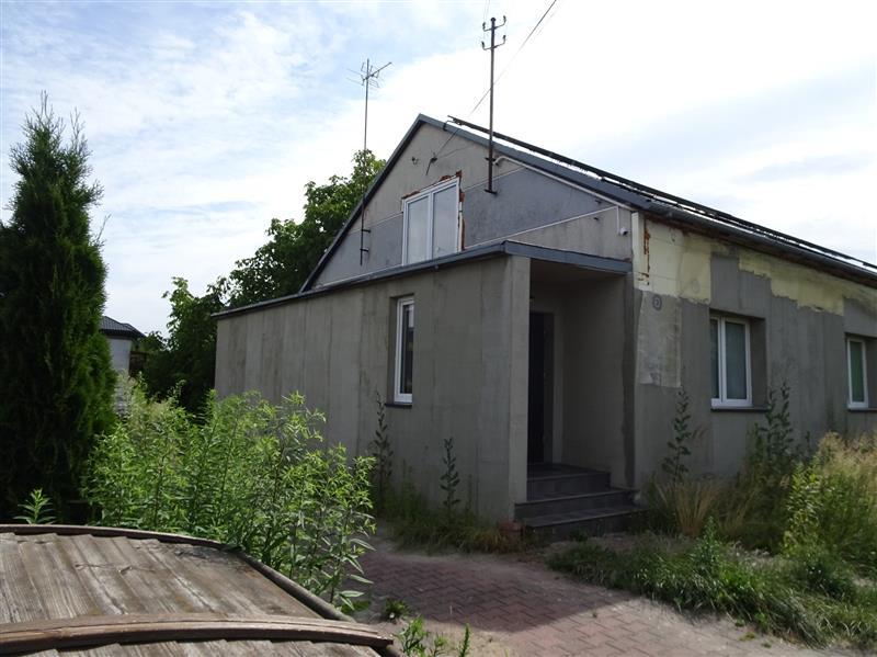 Nieruchomość zabudowana jest wolnostojącym, jednokondygnacyjnym budynkiem mieszkalnym, ze strychem użytkowym, przy czym część parteru stanowią pomieszczenia gospodarcze i garażowe. Budynek o pow. zabudowy 111,00 m2 6, kubaturze ok. 550 m3 7 i pow. użytkowej 80,00 m28, został wybudowany na przełomie lat sześćdziesiątych i siedemdziesiątych ubiegłego wieku. Budynek murowany, jednokondygnacyjny ze strychem użytkowym, pozwalającym na jego adaptację na cele mieszkaniowe. Stropy budynku betonowe, wylewane na mokro. Dach drewniany, dwuspadowy, remontowany, pokryty blachą i wymienionym częściowo orynnowaniem. Na dachu zainstalowano panele fotowoltaiczne. Elewację budynku w części ocieplono styropianem, który nie został oblicowany tynkiem. Części ulega on utlenieniu. Stolarka okienna z pcv po wymianie. Drzwi zewnętrzne po wymianie, o konstrukcji metalowej z wykończeniem drewnianym.