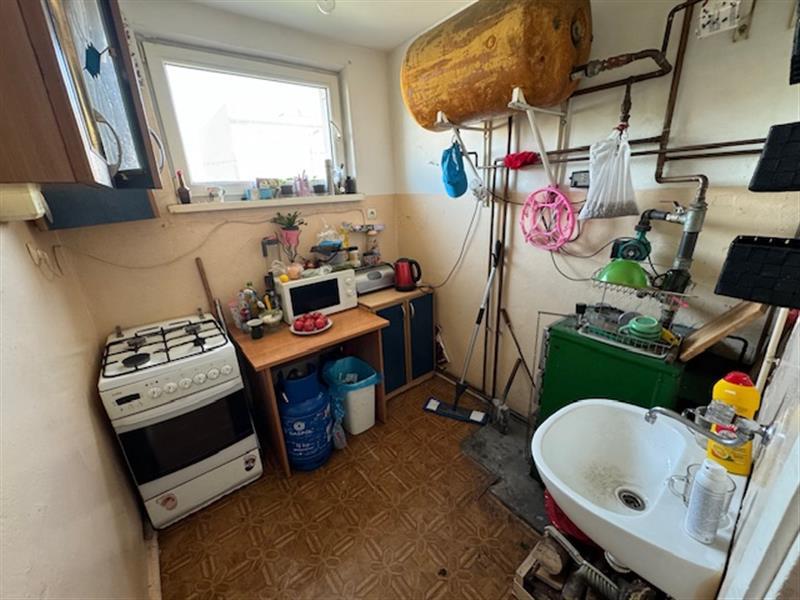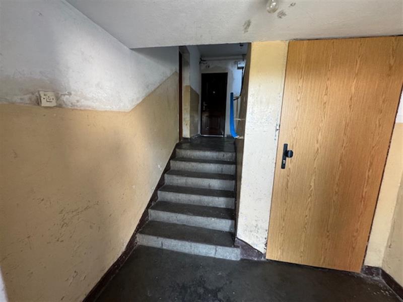 Lokal mieszkalny znajduje się na 1 piętrze. Powierzchnia użytkowa lokalu wynosi 29,00 m2. Składa się z 1 pokoju, kuchni, przedpokoju, łazienki. Stan techniczny lokalu - średni, standard wykończenia - przeciętny. Wykończenie lokalu: tynki wewnętrzne cementowo wapienne, ściany malowane, stolarka okienna PCV, stolarka drzwiowa z płyty MDF - stara. W łazience, kuchni i przedpokoju ściany malowane farbą emulsyjną (do poziomu ok. 1.60 m od podłogi). Sanitariaty w złym stanie. W kuchni znajduje się piec na drzewo i węgiel. Lokal wymaga remontu. Wysokość pomieszczen normatywna.