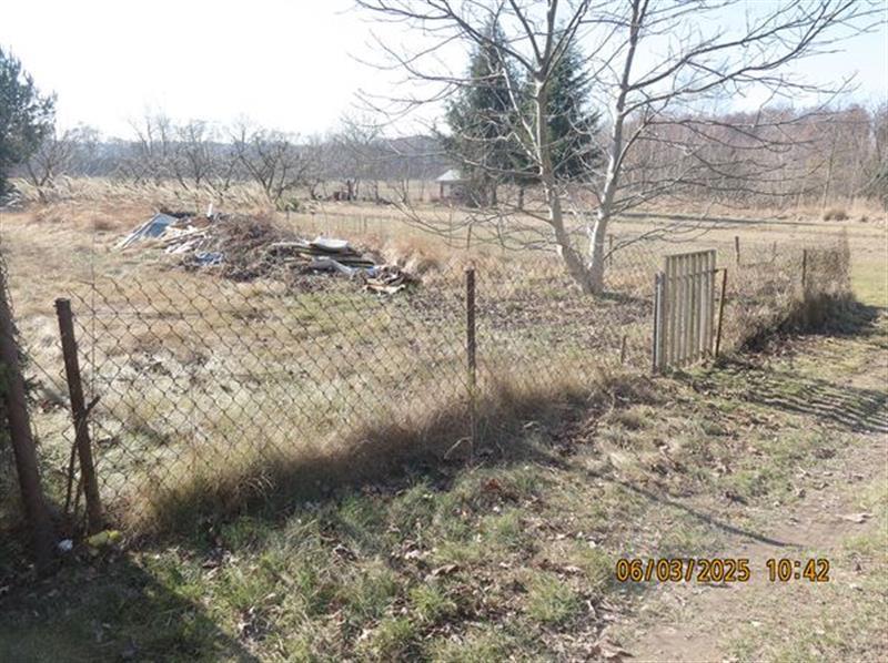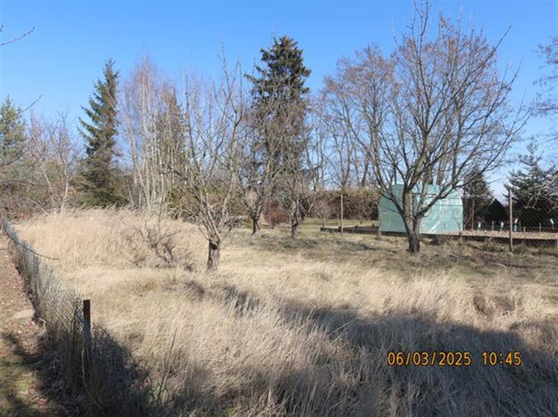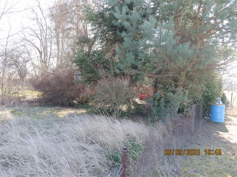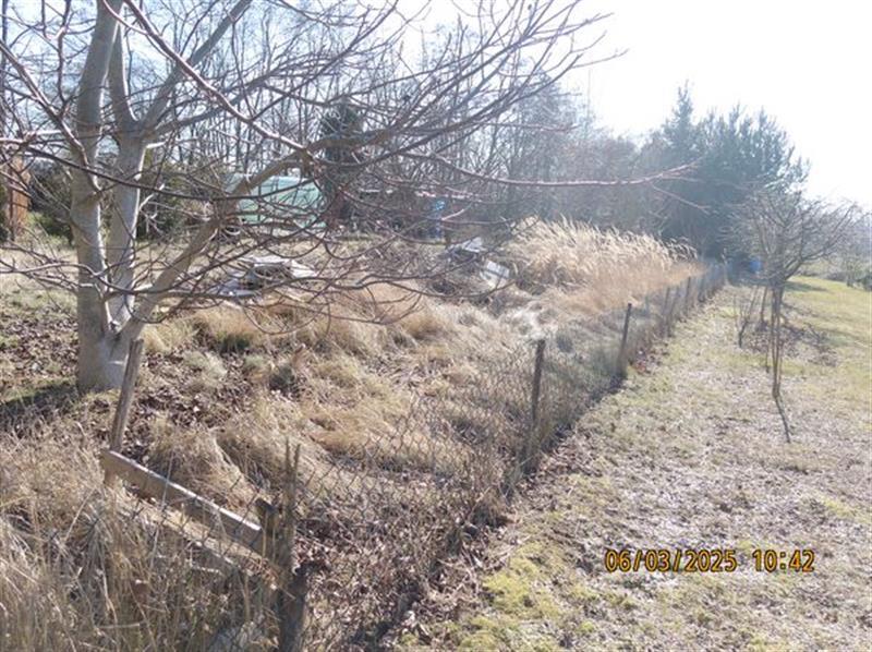 Działka oznaczona w ewidencji gruntów nr 77 o powierzchni 0,0500 ha w kształcie prostokąta o szerokości frontu około 10,5 metra i długości około 47 metrów. Działka jednym z krótszych boków od strony północnej przylega do wewnętrznej gruntowej drogi. Z frontu na działce rośnie kilka starych drzew owocowych. Z tyłu rosną thuje, świerki i jest drewniana altanka letniskowa. Przy altance jest zadaszenie. Poza tym rośnie trawa.
