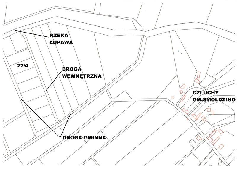 Przedmiot przetargu stanowi nieruchomość tj. działka niezabudowana, numer: 27/5 o powierzchni 0,3126ha, położona w miejscowości Człuchy, gmina Smołdzino, dla której Sąd Rejonowy w Słupsku VII Wydział Ksiąg Wieczystych prowadzi księgę wieczystą o numerze SL1S/00072621/3, wraz z udziałem 1/10 niewydzielonej części w działce nr 27/11 (KW SL1S/00072621/3), stanowiącej drogę wewnętrzną. (działka jest położna w odległości około 100 m od rzeki Łupawy, z widokiem na górę Rowokół, a droga wewnętrzna - działka nr 27/11 ma bezpośreni dostęp do rzeki).