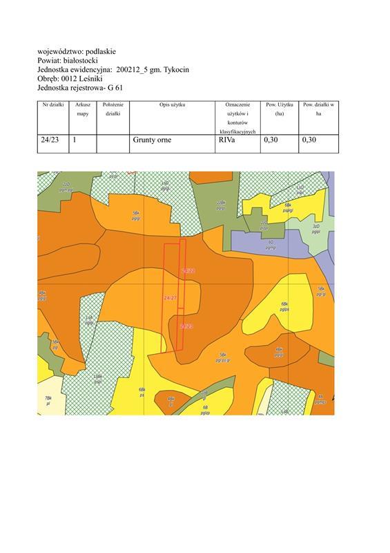 działka oznaczona numerem ewidencyjnym 24/23, grunty rolne (RIVa) o powierzchni 0,30 ha