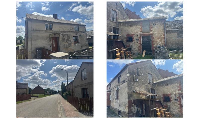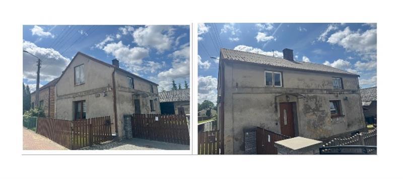 o pow. zabudowy 55,00m2(zgodnie z zapisami kartoteki budynków), parterowy z poddaszem nieużytkowym, podpiwniczony. Budynek wzniesiony w połowie XX w. Budynek mieszkalny będący w średnim stanie technicznym i standardzie wykończenia. Dach konstrukcji drewnianej pokryty eternitem. Budynek nieocieplony, otynkowany. Budynek mieszkalny zlokalizowany we wschodniej części działki od strony drogi publicznej o nawierzchni asfaltowej. Działka 194/1 o płaskim ukształtowaniu terenu. Teren ogrodzony, przeciętnie zagospodarowany.