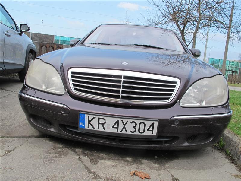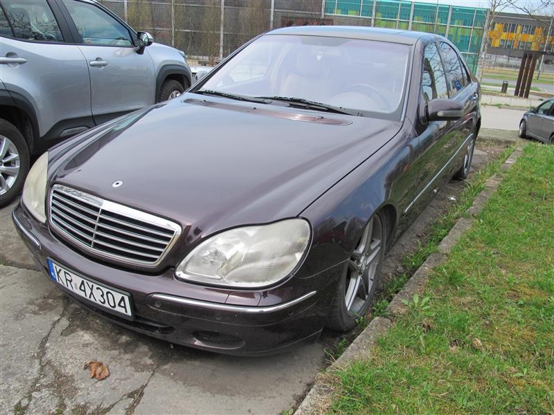 | 1 | samochód osobowy; marka: MERCEDES-BENZ; model: 500 S(W220); numer rejestracyjny KR4X304; nr VIN: WDB2200751A089359; dostępne dokumenty: dowód rejestracyjny; rodzaj nadwozia: sedan; kolor nadwozia: odcień fioletu; pochodzenie: rynek wtórny zagraniczny; rok produkcji: 1999; data rejestracji: 01-01-2000 ( w kraju 31.01.2017); aktualność badań technicznych: tak; pojemność silnika/moc: 4966 cm3 225kW; skrzynia biegów: automatyczna ( 5-stopniowa); rodzaj paliwa: etylina; inne wyposażenie: tapicerka skórzana, felgi alu, szyberdach, zawieszenie pneumatyczne; wskazanie licznika: brak możliwości odczytu ze względu na niesprawną instalację elektryczną (prawdopodobnie rozładowany akumulator), na kontrolce oleju na datę 16.10.2024 r. widnieje przebieg 289 415 km; ilość właścicieli: brak danych; sprawność techniczna: nie- instalacja elektryczna niesprawna, prawdopodobnie rozładowany akumulator; ogumienie : w stanie średnim; powłoki lakiernicze: stan dobry - do napraw; karoseria : stan dobry- do napraw; stwierdzone usterki: niewielkie zarysowania, otarcia i obicia powłoki lakierniczej; silne wykwity korozji na klapie bagażnika i okolicach , na błotnikach, pęknięty fragment plastikowej obudowy fotela. | 1 | 10 600,00 zł | 5 300,00 zł | 265,00 zł |
