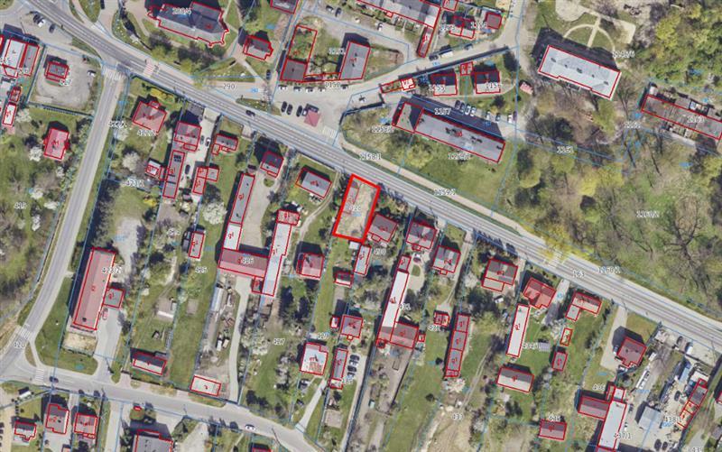 Udziały po 1/2 części w działce numer 428 o pow. 0,04ha posiada bezpośredni dostęp do drogi publicznej asfaltowej. Działka w kształcie zbliżonym do prostokąta o szerokości około 14metrów. Ogrodzenie tylko z działkami sąsiednimi. W działce we frontowej części przebiega linia wodna i energetyczna, które to doprowadzone są do działki. Grunt ziemny, zaniedbany, zakrzaczony, porośnięty wysoką trawą. W północno zachodniej części działki zlokalizowany jest budynek mieszkalny wolnostojący wybudowany w granicy działki a nawet według mapy „wchodzący” w działkę sąsiednią południowo zachodnim narożnikiem.